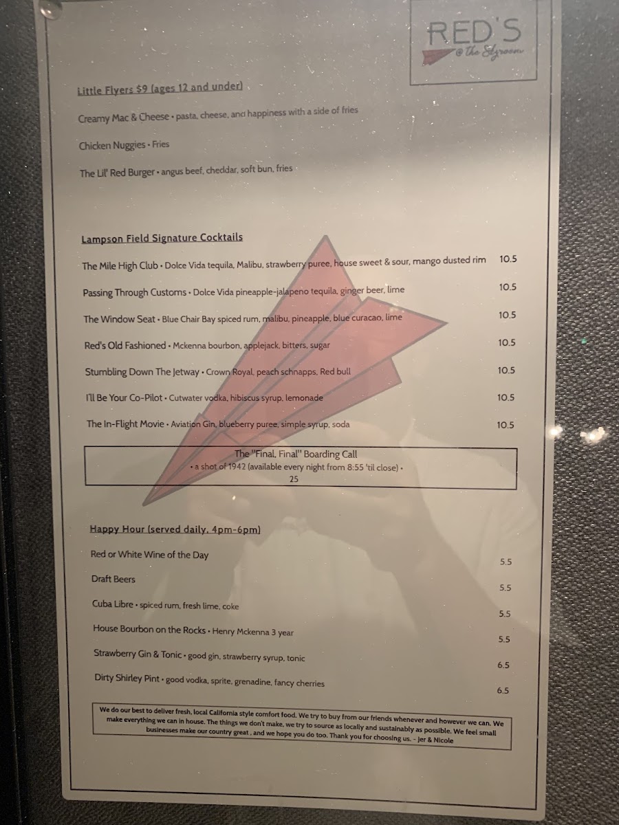 The restaurant's vibe is casual yet inviting, perfect for unwinding with friends or enjoying a meal after a day of exploration. With panoramic views of the airport, you can enjoy the excitement of aviation while savoring every bite. Whether you're dining with family or catching up with friends, Red's has a laid-back feel that makes every meal a memorable occasion.